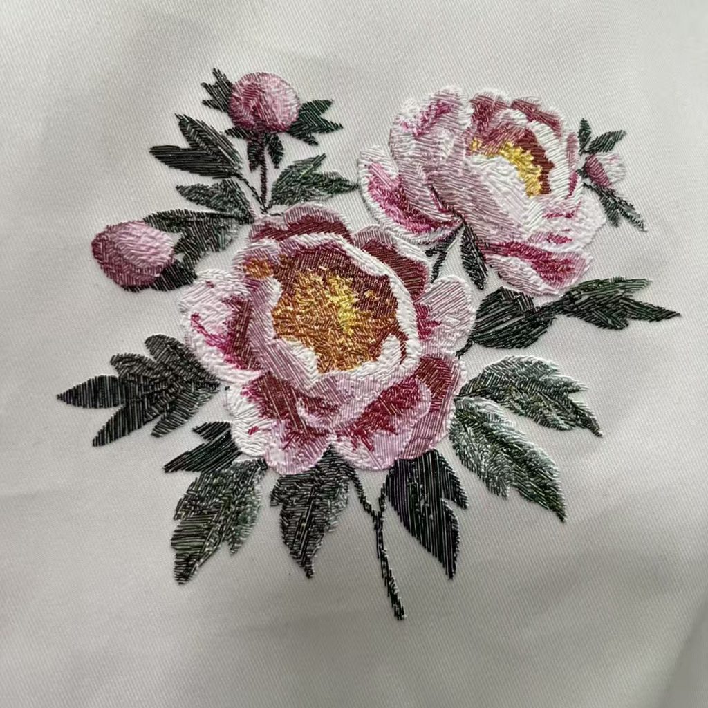 1. Prepare Design: Create your artwork at full resolution, set 3D texture height parameter (8–25 μm) to match simulated embroidery effect.
